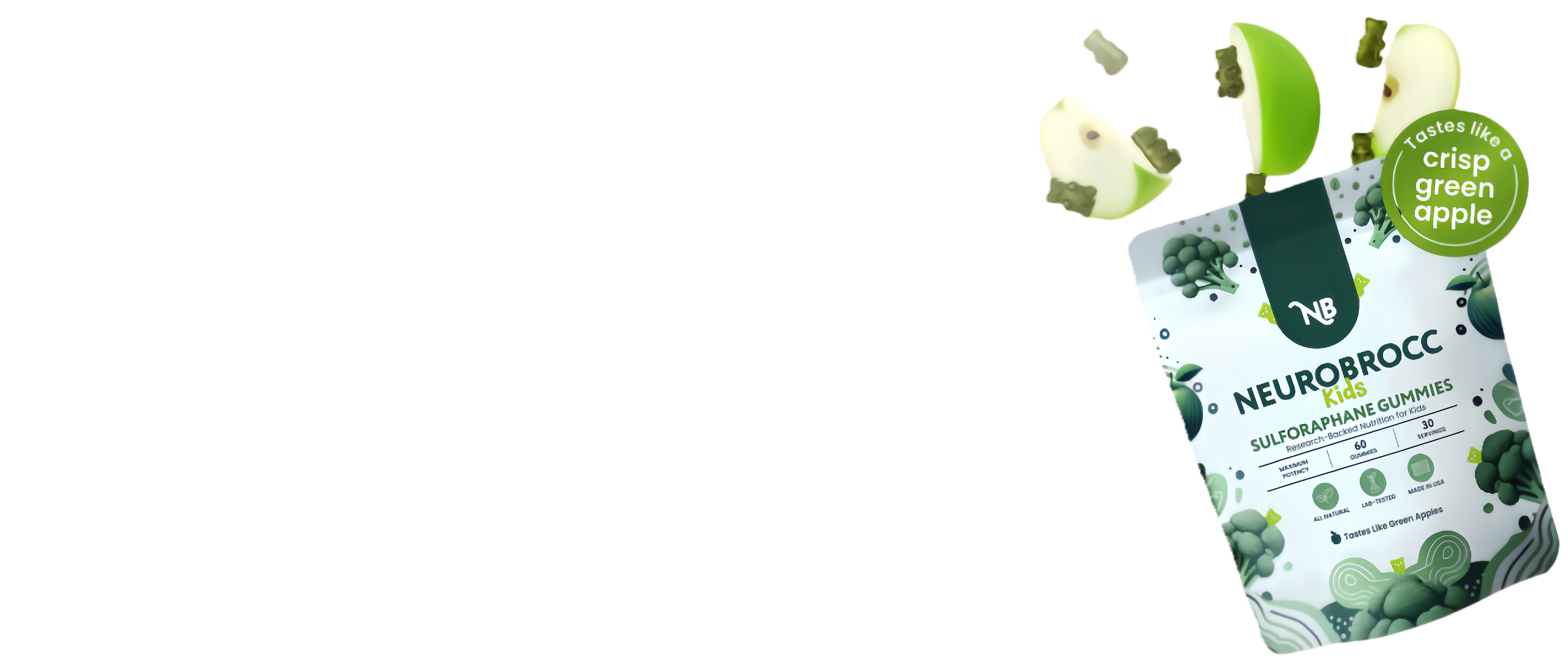 When your child takes NeuroBrocc, sulforaphane activates their body’s natural defense system, shielding the brain from oxidative stress or "brain rust" caused by processed foods, screens, and environmental toxins.