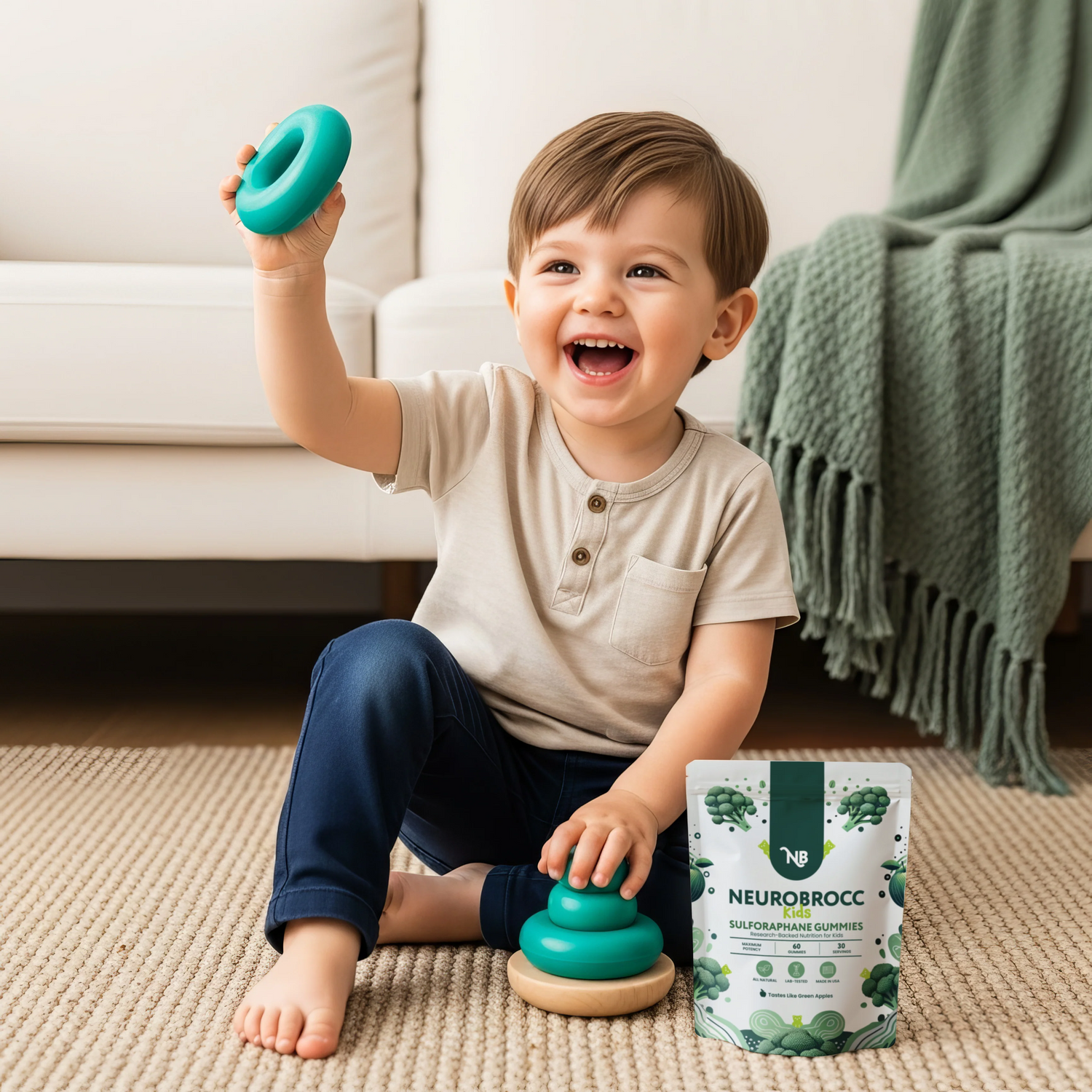 Every child is unique, but here's what most parents observe: some parents notice small improvements in mood and fewer meltdowns within the first few weeks. More noticeable changes in focus and behavior typically appear after 30 days, as sulforaphane supports the body's natural detoxification and helps regulate oxidative stress.
